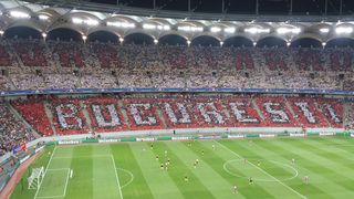 1 din 3 | Lovitura umilitoare pentru Steaua la meciul cu Manchester City. A aparut un mesaj urias cu "Doar Dinamo Bucureşti" pe toată tribuna