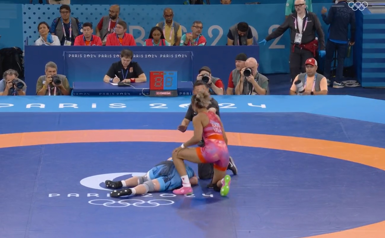 Accidentul a avut loc în timpul întâlnirii din primul tur la lupte feminin, categoria 76 de kilograme, la începutul reprizei a doua, cu sportiva din Statele Unite. La un moment dat, Alexis Blades a aruncat-o atât de tare pe saltea pe româncă, încât aceasta a rămas la pământ.