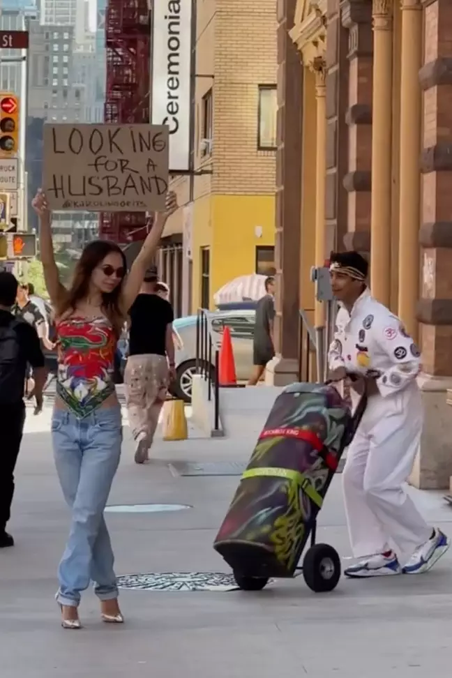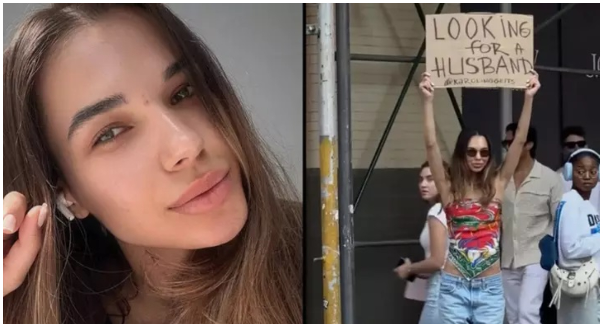 Karolina Getis a creat o pancartă pe care scrie „În căutarea unui soț” și a defilat cu el prin New York, în speranța că va găsi mai mult noroc decât pe telefonul ei.