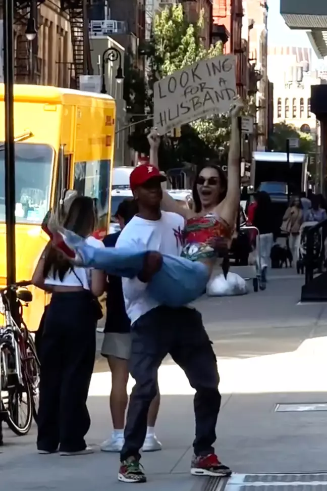 O femeie din New York a decis să renunțe la toate site-urile de întâlniri și să iasă în stradă cu o pancartă din carton pe care scrie „căutând un soț”.