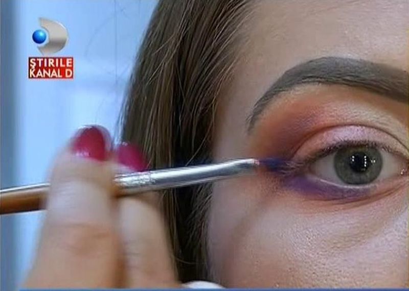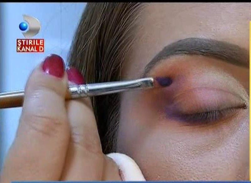 Conturati zonele de umbra cu mov. Aplicati aceeasi nuanta in coltul extern al ochiului pentru ca va accentua astfel pleoapa inferioara. Pentru ca machiajul sa fie unul reusit, specialistii va recomanda sa estompati bine nuantele alese.