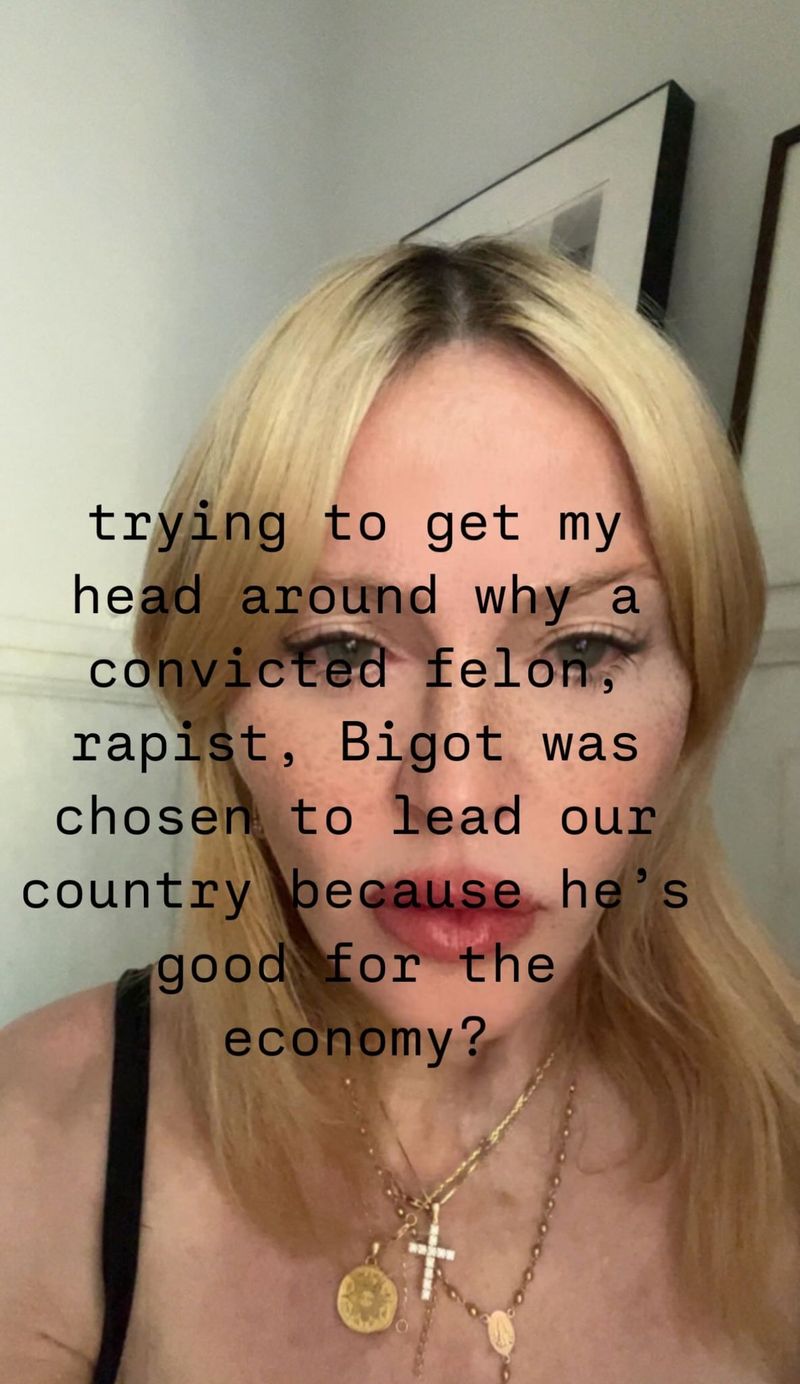 Regina muzicii pop a mărturisit că nu înțelege de ce faptul că Trump este bun pentru economia țării a învins faptul că este un bărbat cu multe acuzații și condamnări.Încerc să-mi înțeleg de ce un infractor condamnat, violator, bigot a fost ales să conducă țara noastră pentru că este bun pentru economie?, a comunicat Madonna urmăritorilor de pe rețelele sociale.