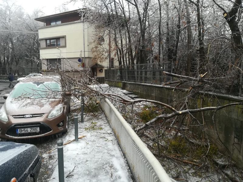 În Capitală, s-a intervenit pentru degajarea a peste 700 de copaci căzuţi pe carosabil din cauza poleiului, fiind avariate peste 50 de autoturisme, anunță Ministerul Afacerilor Interne (MAI).