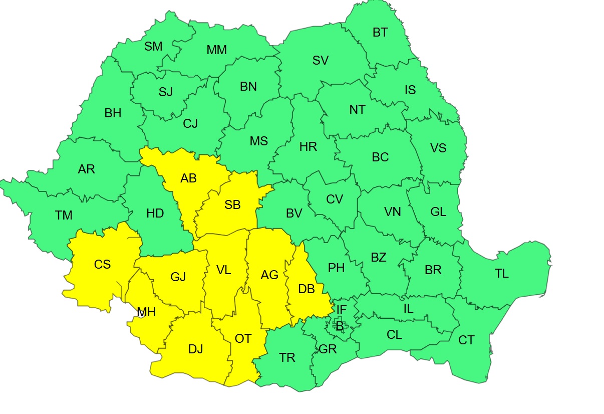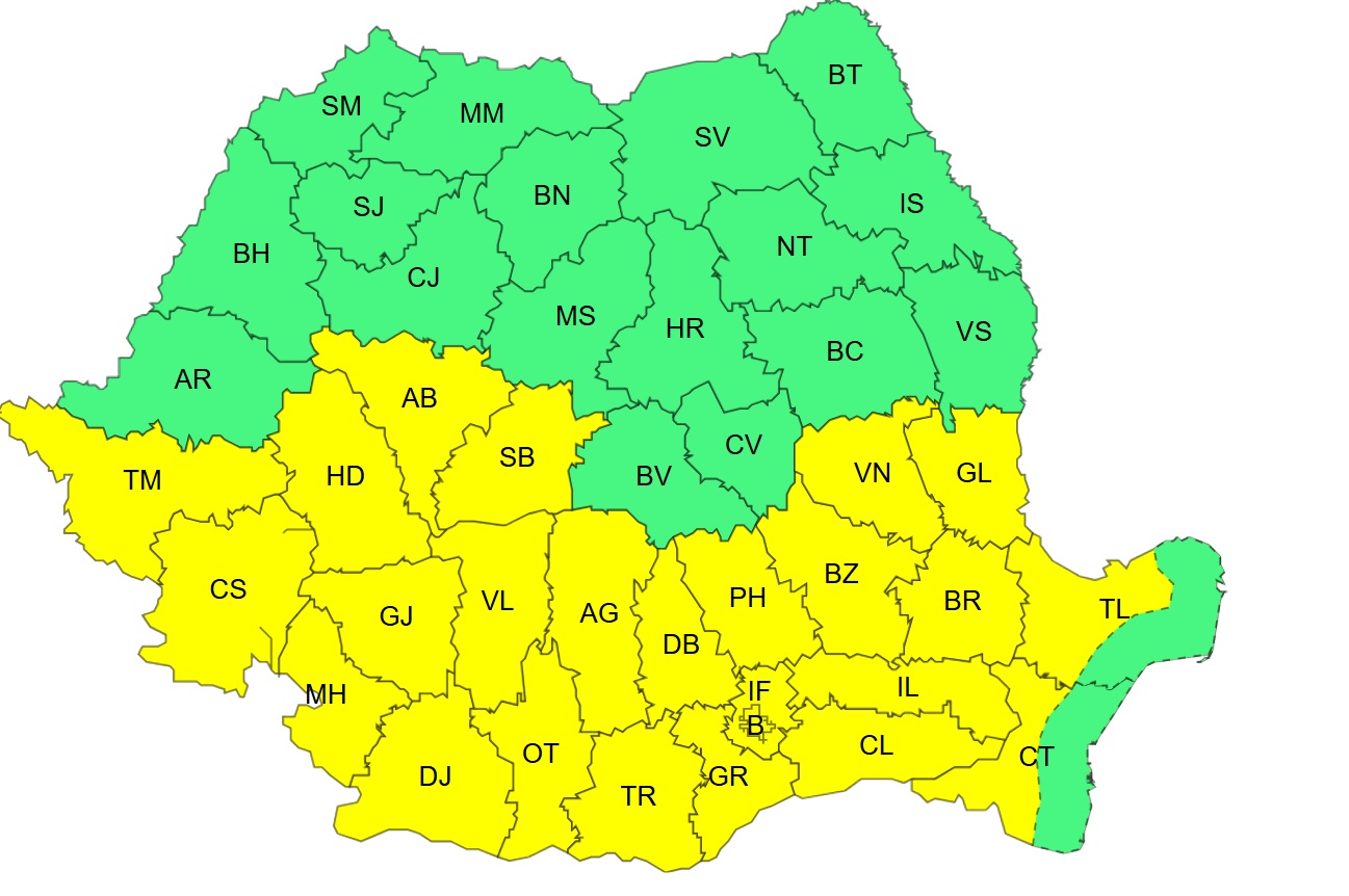 „În Banat, Oltenia, Muntenia, sudul Moldovei, sud-vestul Transilvaniei și în Dobrogea continentală, pe arii relativ extinse va fi caniculă și se vor înregistra temperaturi maxime cuprinse între 34 și 38 de grade.