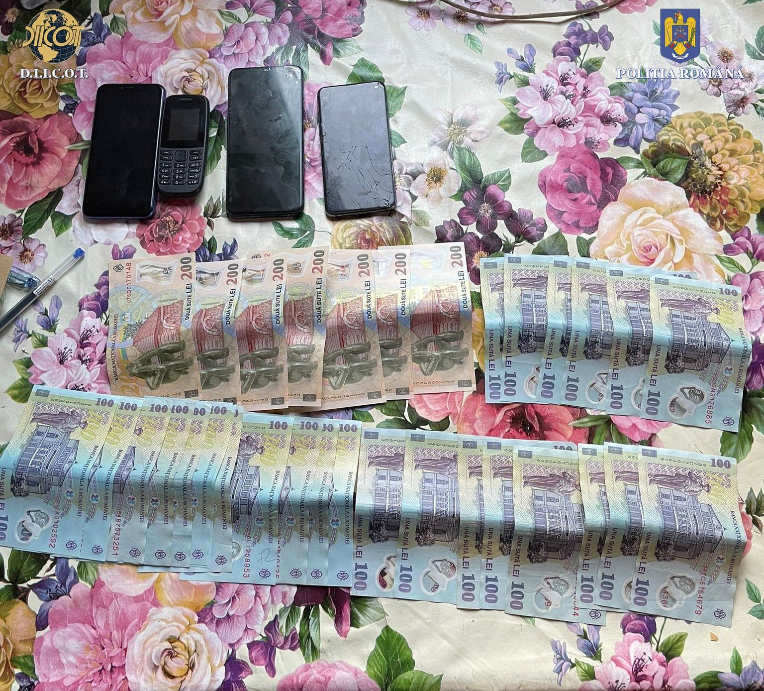 În urma perchezițiilor domiciliare au fost descoperite și ridicate, în vederea cercetărilor, 17 telefoane mobile și 7.800