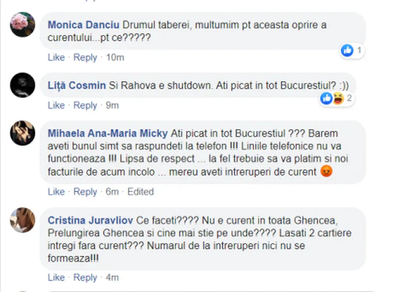 Bucureştenii au lăsat zeci de comentarii în care și-au spus nemulțumirile pe pagina de Facebook ENEL.
