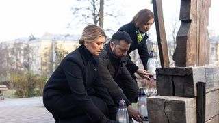 La eveniment a participat și președintele Republicii Moldova, Maia Sandu, după cum informează President.gov.ua. Cei trei demnitari au așezat lămpi cu icoane pe cruce pe Aleea Celor o sută de Eroi Cerești din Kiev.