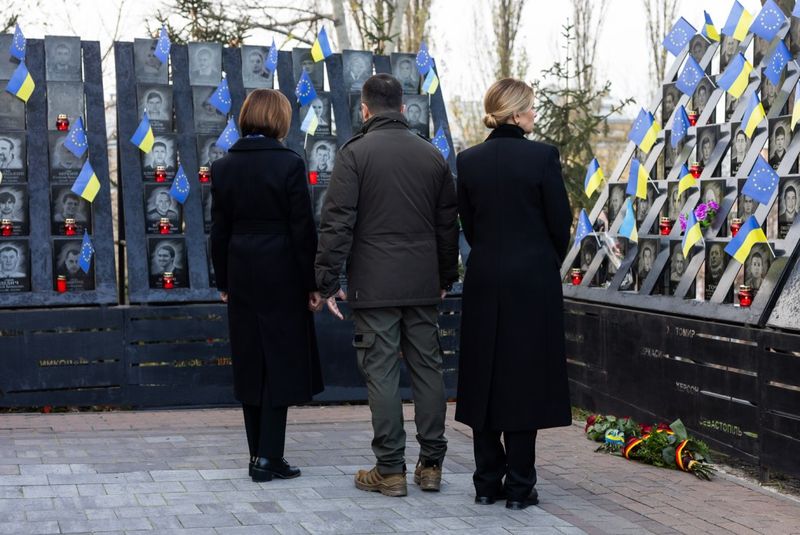 Volodimir Zelenski și soția sa, Olena Zelenska, împreună cu președinta Republicii Moldova, Maia Sandu au onorat memoria celor uciși în timpul Revoluției Demnității din 2013, a transmis administrația prezidențială de la Kiev.