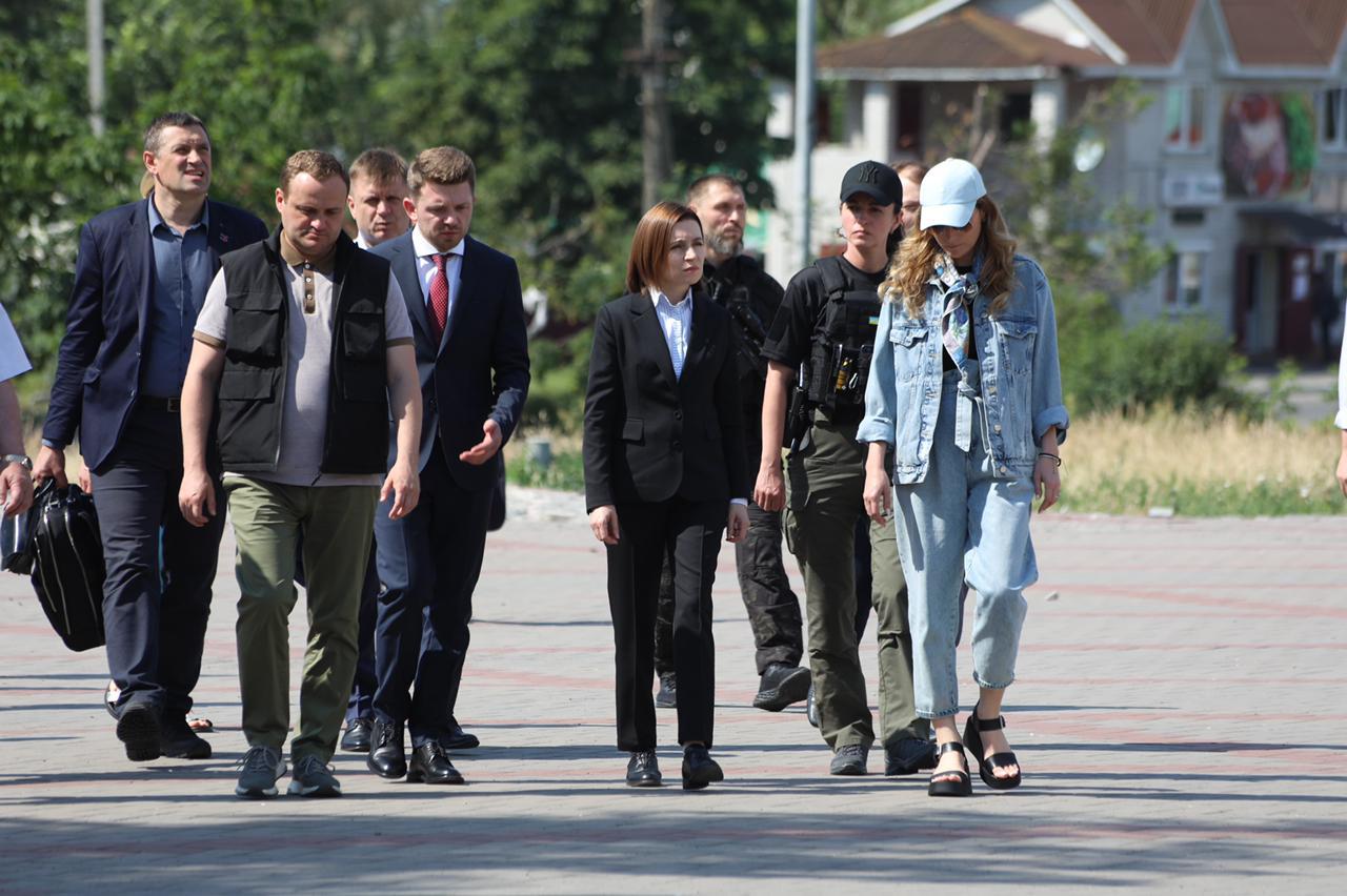 Maia Sandu a putut să vadă cu proprii ochi devastările războiului inițiat de Rusia în Ucraina, precum și urmele lăsate de crimele de război la Bucha sau Irpin.