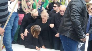 Nedezlipită de lângă cosciugul fiului său, mama lui Răzvan Ciobanu a cedat. În urmă cu câteva momente, femeii i s-a făcut rău. Imediat, apropiații i-au sărit în ajutor și au purtat-o pe brațe.