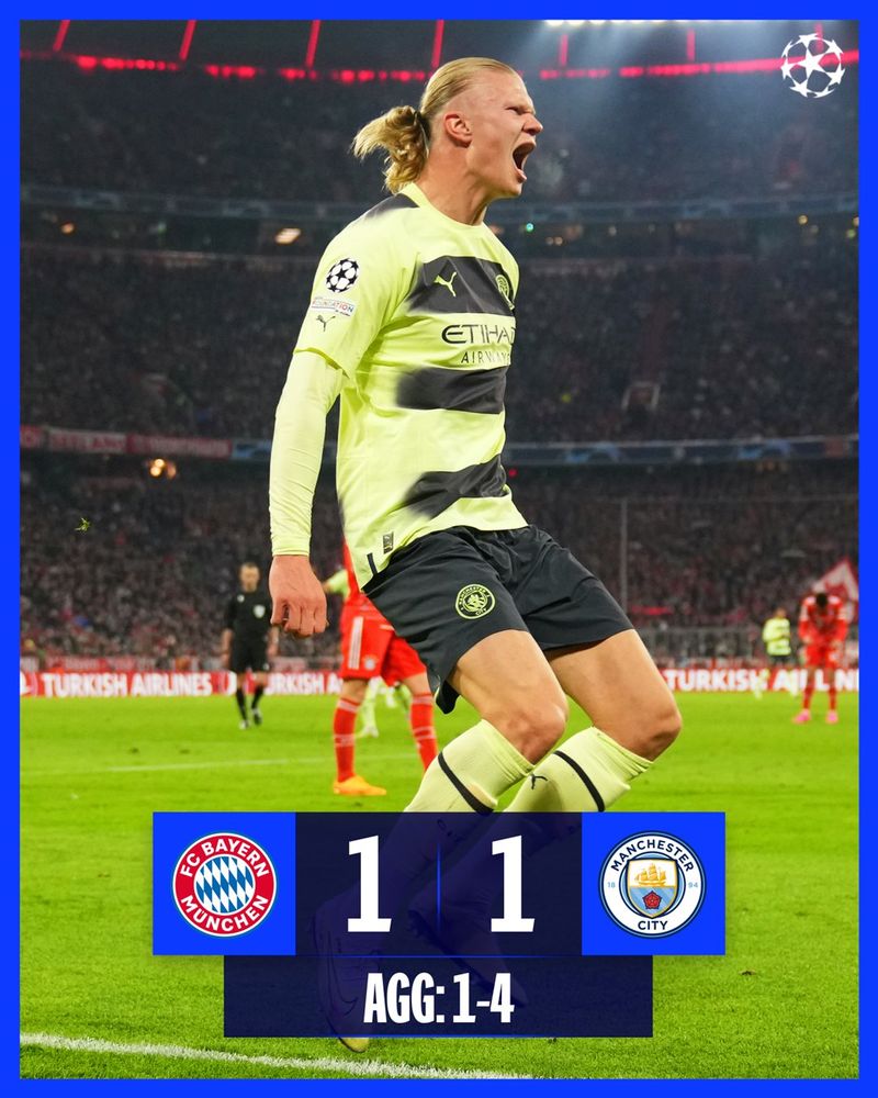 Jucătorii lui Guardiola au obținut un scor egal 1-1 în deplasarea de la Munchen și vor întâlni în semifinalele Champions League 2023 pe Real Madrid.