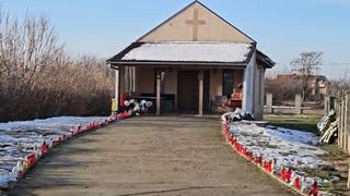 În capelă, dar și în curtea capelei, au fost depuse zeci de lumânări și de coroane.