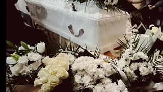 Trupul neînsuflețit al adolescentului este pus într-un sicriu alb, care arată puritatea sa, copilul ucis cu sânge rece de cei pe care îi considera prieteni. Sicirul este înconjurat de coroane cu flori albe, iar imaginea este mai mult decât cutremurătoare.