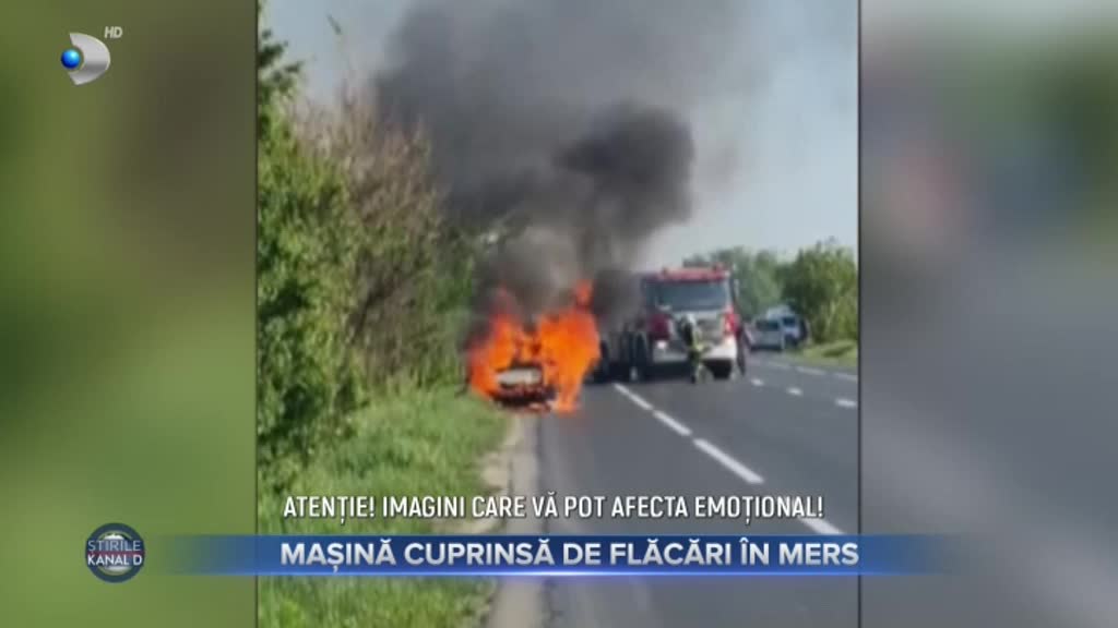 Stirea "Mașină cuprinsă de flăcări în mers" difuzata in cadrul grupajului informativ Știrile KANAL D din 23 May 2023.