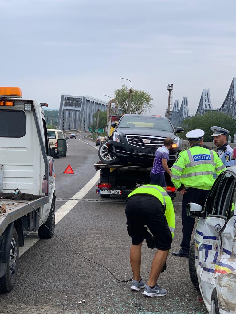 Accidentul s-a produs în jurul orei 8.00, pe sensul de mers Constanţa- Bucureşti, în dreptul oraşului Cernavodă. Centrul Infotrafic din Inspectoratul General al Poliţiei Române a informat la ora 8.50, joi, 5 septembrie, că, pe Autostrada A2 Constanţa- Bucureşti, la kilometrul 160, în zona localităţii Cernavodă, circulaţia este întreruptă pe sensul către Bucureşti, „din cauza unui eveniment rutier nesoldat cu victime, în care au fost implicate un autoturism şi un ansamblu de vehicule“.