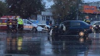 O maşină de Poliţie în misiune a fost lovită în plin, în Bucureşti. Un şofer nu a acordat prioritate autospecialei care avea pornite semnalele acustice şi luminoase.