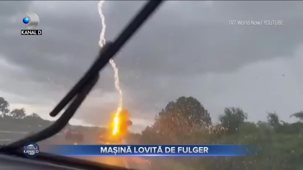 Stirea "Mașină lovită de fulger" difuzata in cadrul Stirilor KANAL D din 11 07 2022