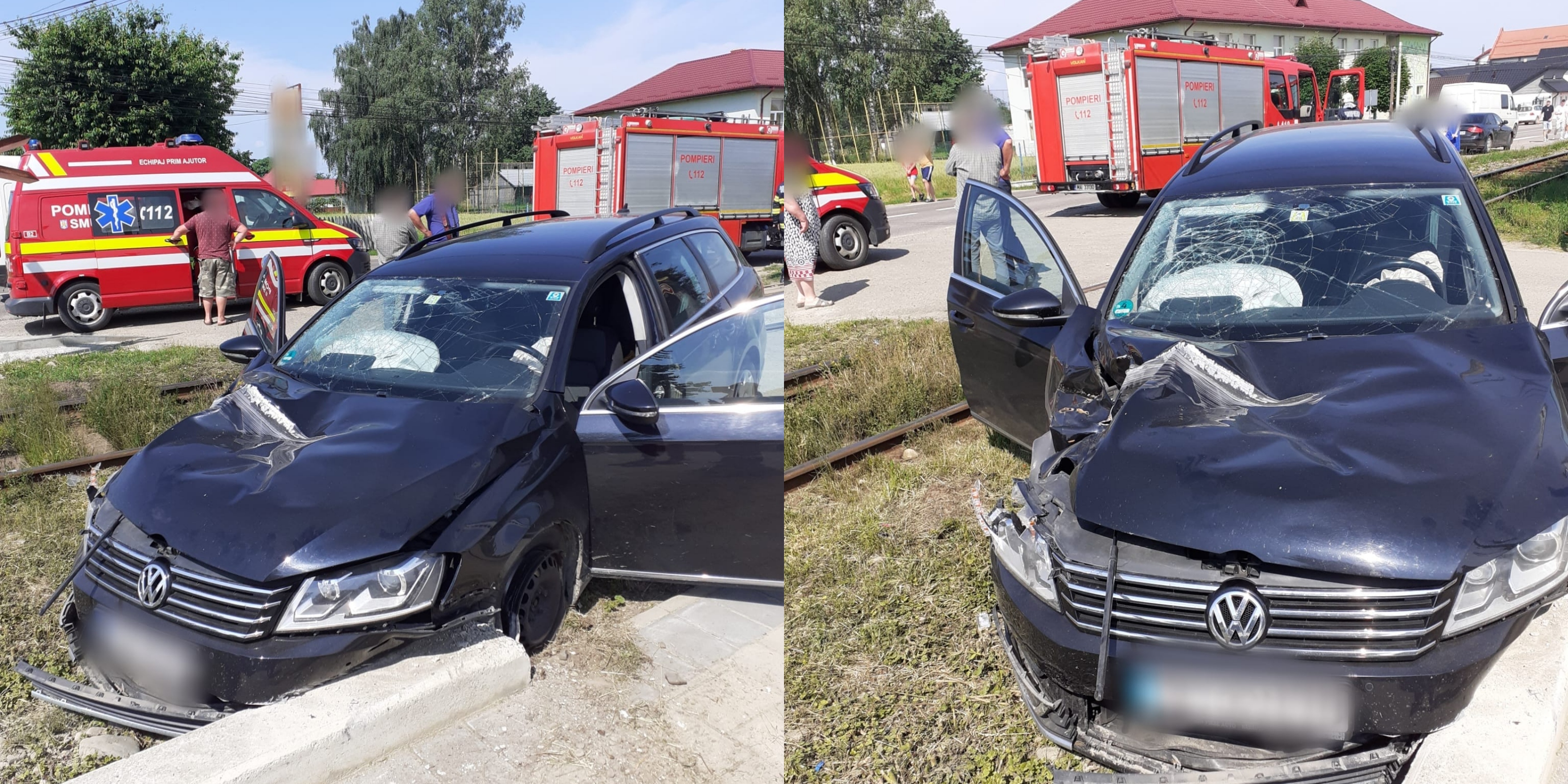 Un autovehicul a fost lovit de trenul Putna - Suceava. Pompierii au intervenit de urgență la fața locului.