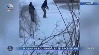 Stirea "Mașina se scufundă, ea își face selfie" difuzata in cadrul Stirilor KANAL D din 19 01 2022