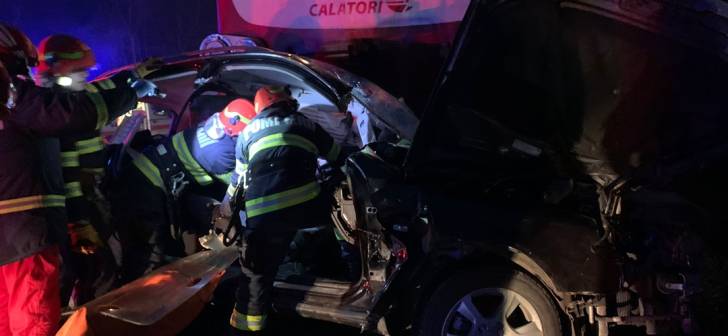 Şoferul a rămas încarcerat, fiind scos dintre fiarele maşinii cu ajutorul pompierilor de la descarcerare.