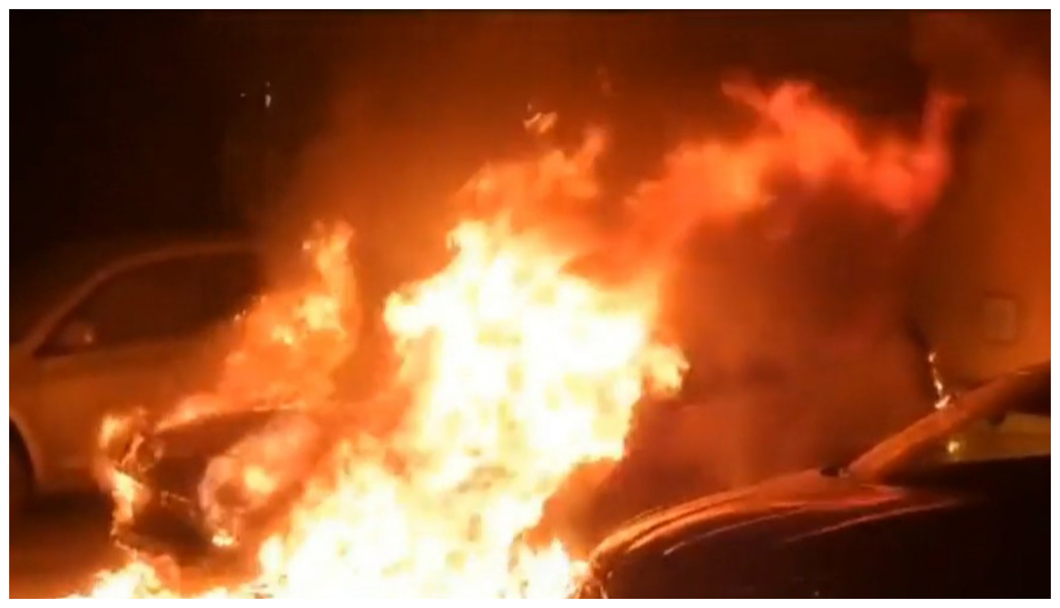 În imaginile surprinse de camerele de supraveghere din zonă se vede cum un bărbat cu glugă în cap aruncă pe mașină ceva ce pare a fi o sticlă incendiară. Imediat au izbucnit și flăcările puternice, care au mistuit în totalitate autoturismul.
