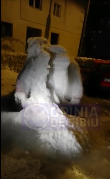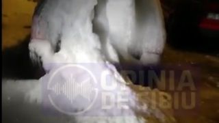 O avarie la o conductă de apă a făcut ca mașina unui șofer din Sibiu să se transforme peste noapte într-un cub de gheaţă.