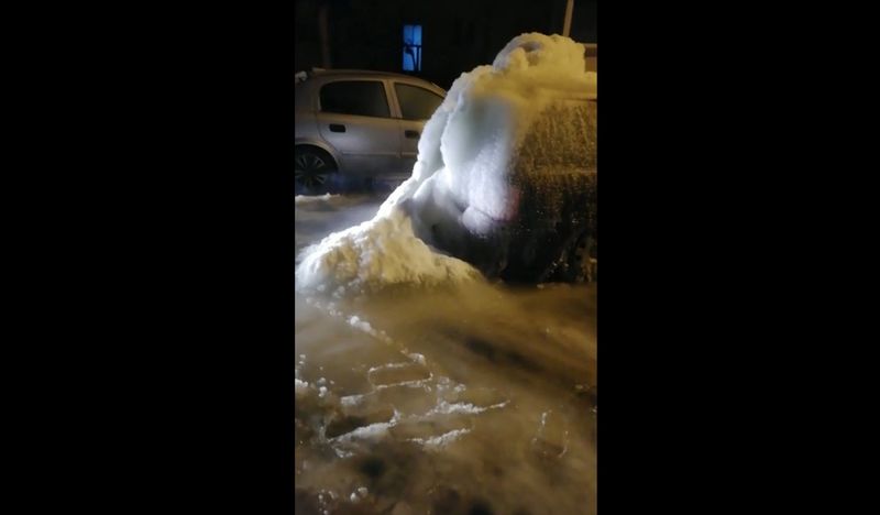 O șoferiță din Sibiu a avut o surpriză uriașă când a vrut să plece cu mașina din fața blocului. Femeia care locuiește în cartierul Valea Aurie și-a găsit mașina sub un strat gros de gheață, după ce peste noapte a apărut o avarie într-o conductă și apa a țâșnit peste parcare, informează presa locală.