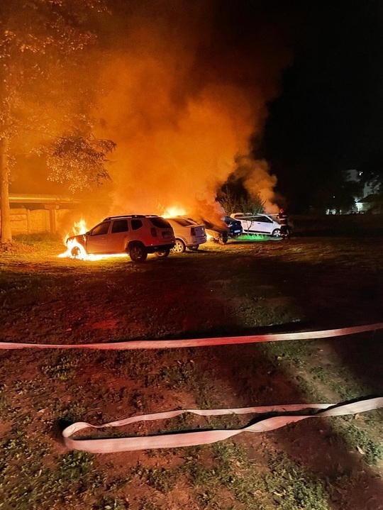 Potrivit primelor estimări, au ars opt autoturisme si un microbuz.