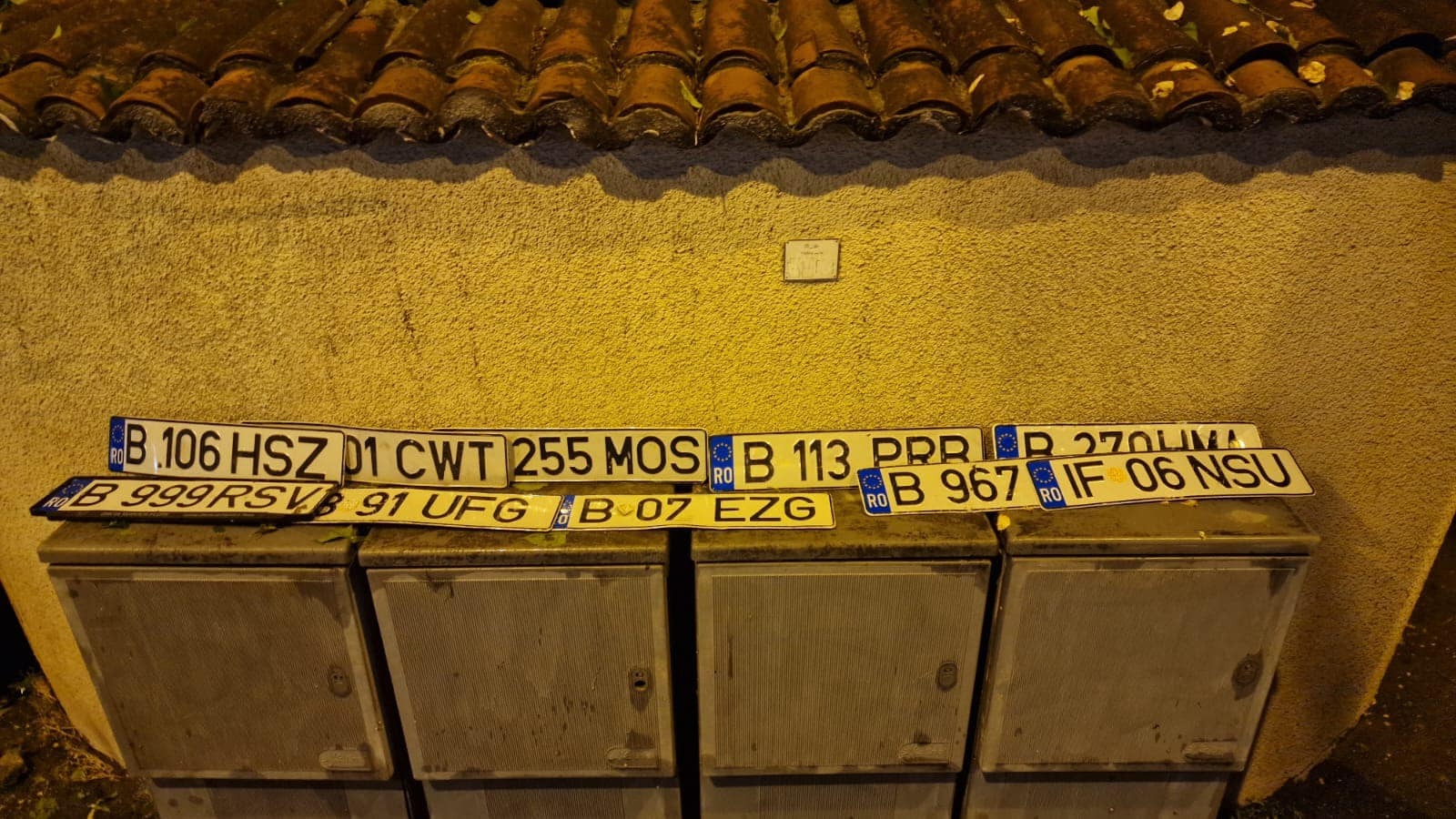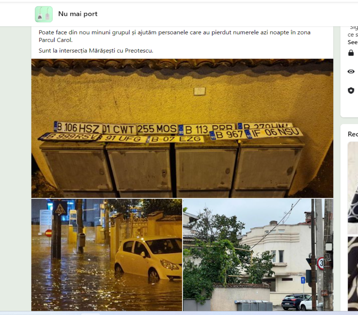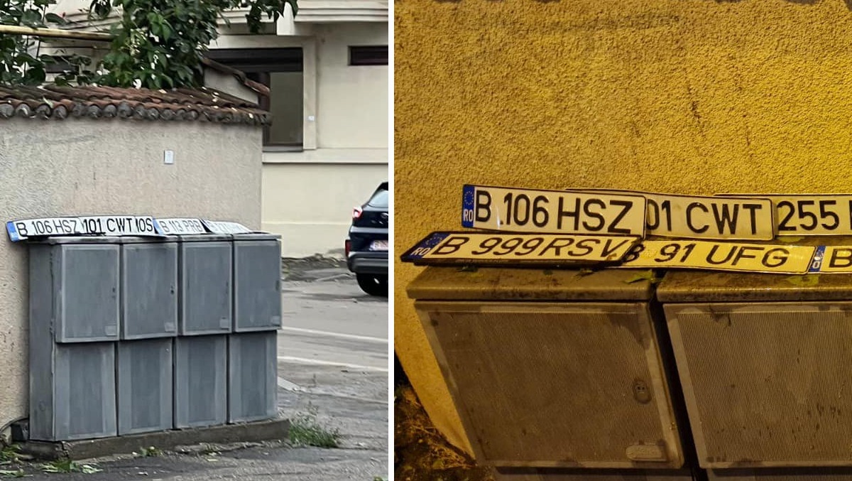 Pe un grup de Facebook, o tânără din București a anunțat că pe o străduță din Sectorul 4 al Capitalei se află acum mai multe plăcuțe cu numere de înmatriculare, pierdute după vijelia de ieri.