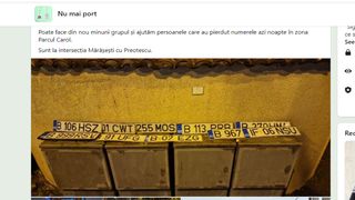 "Poate face din nou minuni acest grup și reușim să ajutăm persoanele care au pierdut numerele azi-noapte în zona Parcului Carol. (Plăcuțele) sunt la intersecția Mărășești cu Preotescu", a scris femeia.