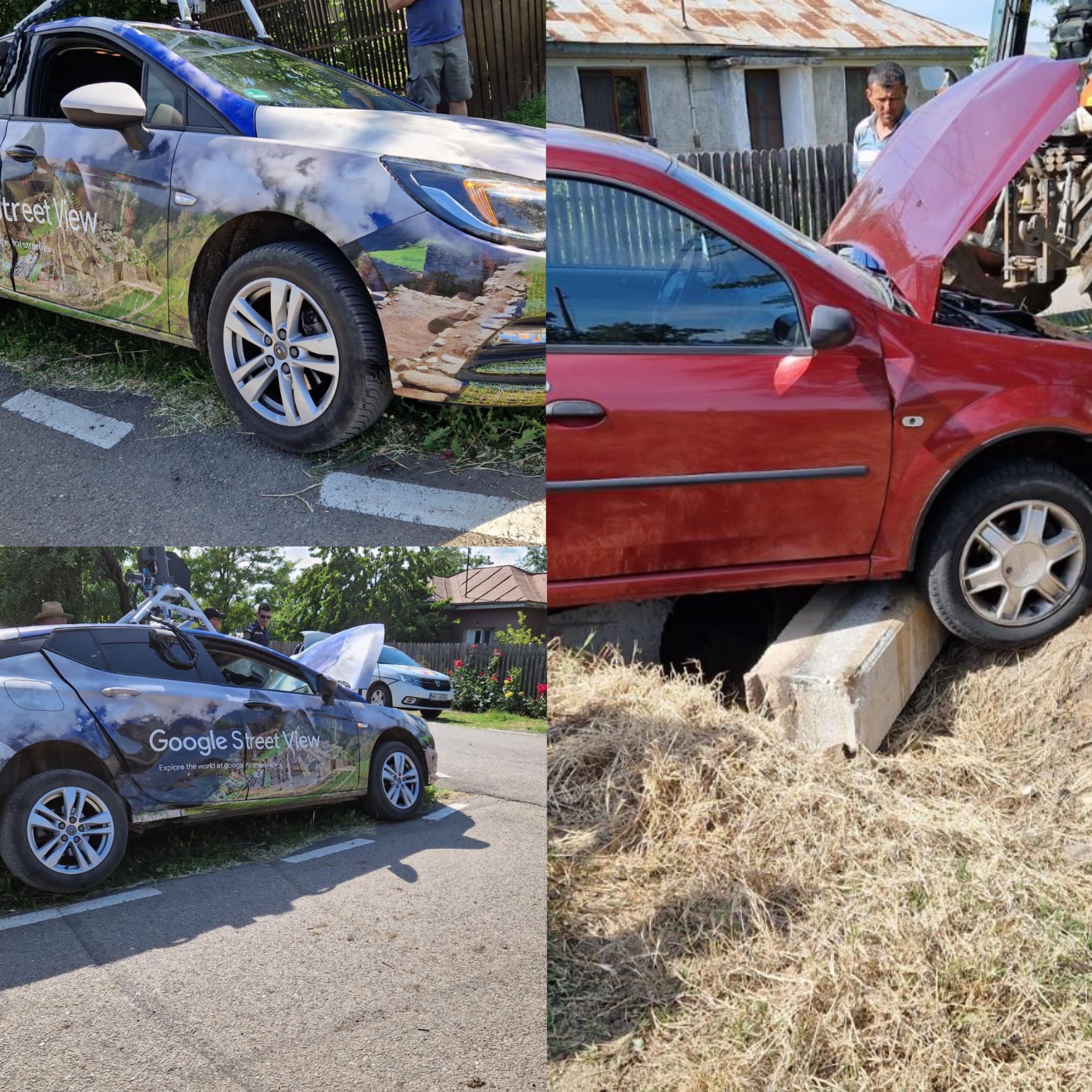 “Potrivit poliției, cauza impactului ar fi fost neacordarea de prioritate de către șoferul autoturismului Logan. Din fericire, evenimentul s-a soldat doar cu pagube materiale, ambii șoferi scăpând teferi din coliziune. Mașina care actualiza hărțile Google Street View a fost însă aruncată în șanț, suferind daune serioase.