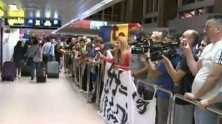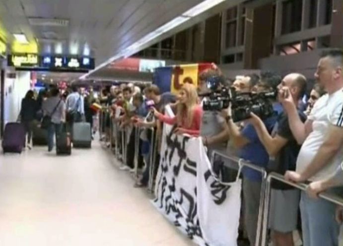 La 4 dimineata a aterizat cursa de Paris cu cei mai tristi oameni. Fotbalistii si conducatorii federatiei romane de fotbal. In ciuda orei, cativa suporteri tot i-au asteptat.