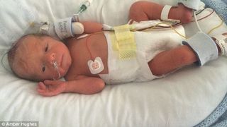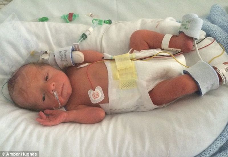 Amber era insarcinata in 30 de saptamani cand a ajuns la spital cu dureri cumplite. Medicii i-au spus ca trebuie sa ii efectueze o cezariana in regim de urgenta.