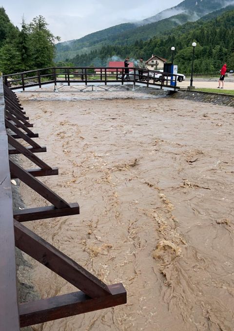 Autoritățile au emis, marti, un mesaj Ro-Alert pentru locuitorii si turistii care se aflau in zona Plaiul Foii din Zărneşti, judeţul Braşov, după ce apele unui pârâu s-au umflat în urma ploilor torenţiale, distrugând două podeţe.