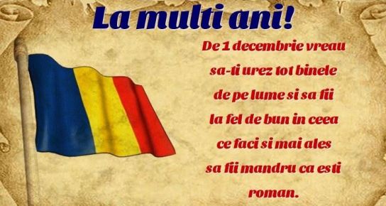 De 1 Decembrie, Ziua Națională a României vă doresc distracție plăcută și să vă bucurați că sunteți români. La Mulți Ani plini de realizări!