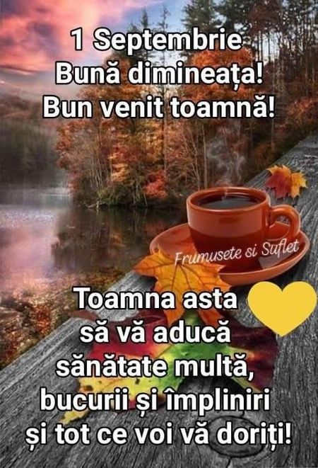 Mesaje de 1 septembrie 2022. Odată cu venirea anotimpului toamna zilele devin mai scurte, iar nopțile mai lungi. Temperaturile ridicate ale verii încep să ne părăsească, iar tabloul este completat de frunzele colorate care încep să cadă ușor.