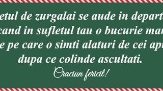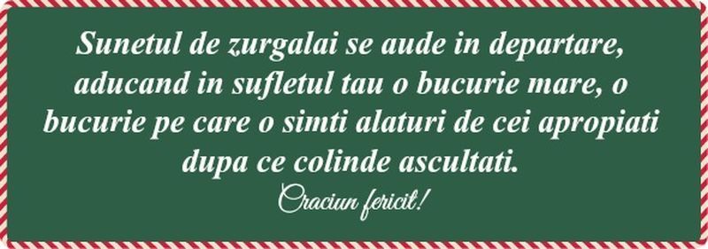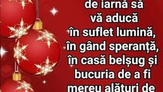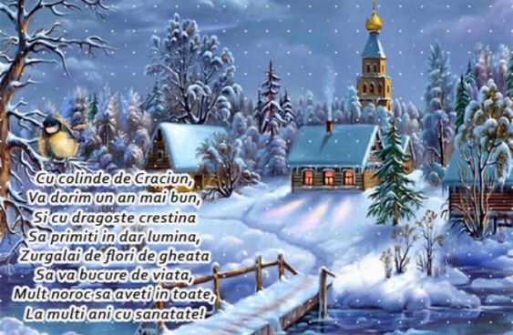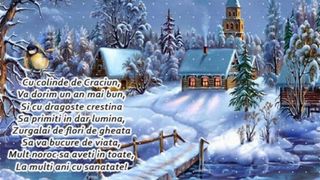 ” Cu colinde de Crăciun, vă dorim un an mai bun, și cu dragoste creștină să primiți în dar lumină, zurgălăi de flori de gheață să va bucure de viață, mult noroc s-aveși în toate, La Mulți Ani cu sănătate!”