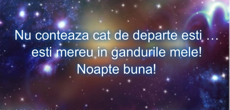 Suntem sub aceiași lună și vedem aceleași stele, iar sub razele lor vreau să îți spun cât de mult de iubesc. Noapte bună, iubita mea!