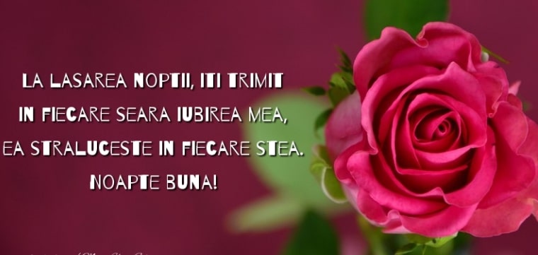 Luna să te vegheze, iubirea noastră să îți țină de cald, stelele să îți lumineze visele, iar tu, draga mea, să te odihnești. Ziua de mâine să însemne numai bucurie pentru tine. Te iubesc. Noapte bună, iubita mea.