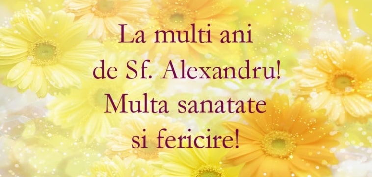 Fie ca toate împlinirile frumoase, sănătatea si spiritul acestei zile sa va însoțească pretutindeni! Va doresc o zi de Sf. Alexandru cat mai frumoasa!
