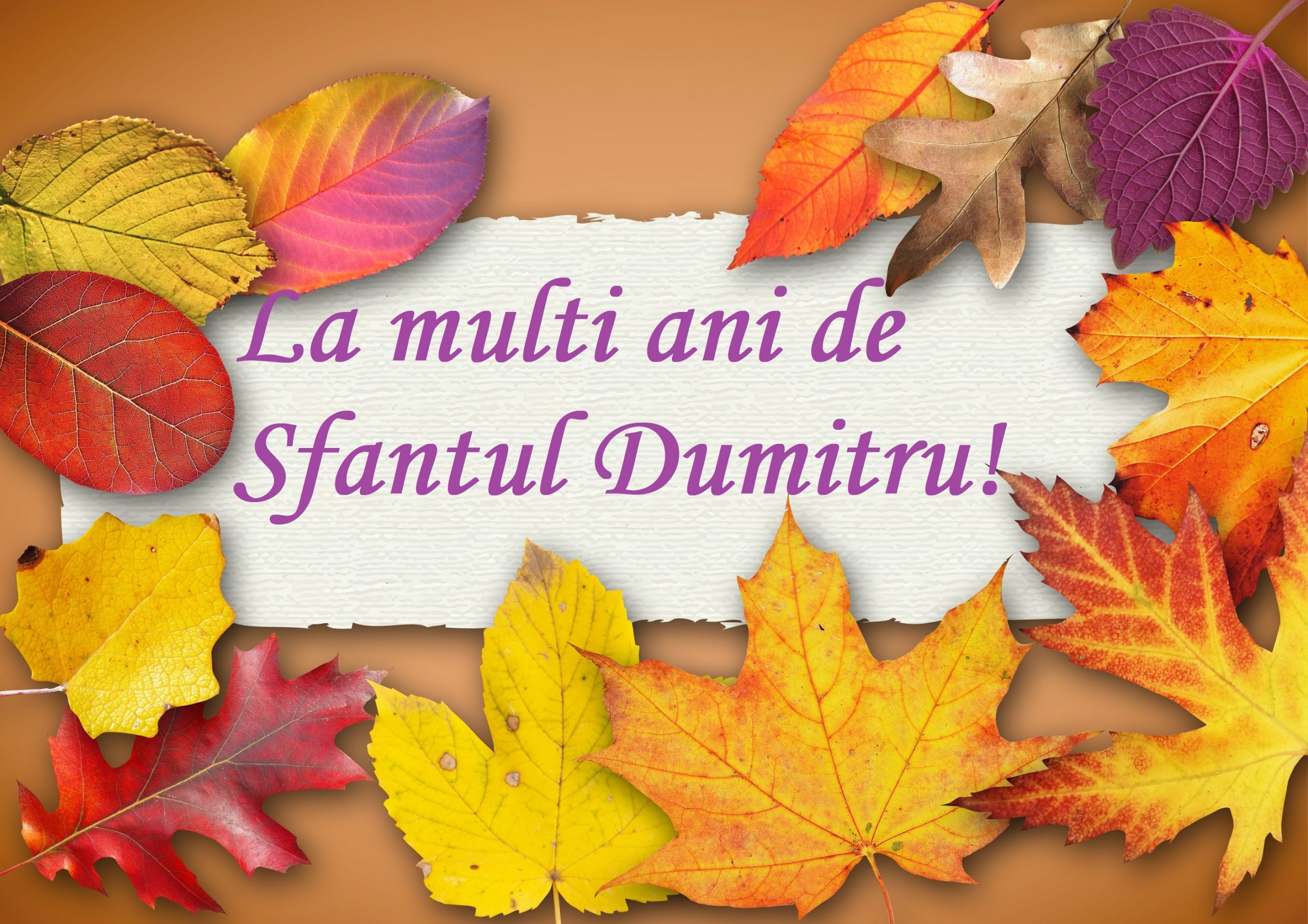 „Fie că toate împlinirile, sănătatea şi spiritul acestei zile să te însoţească pretutindeni. Îţi doresc o zi de Sf. Dumitru cât mai frumoasă!”
