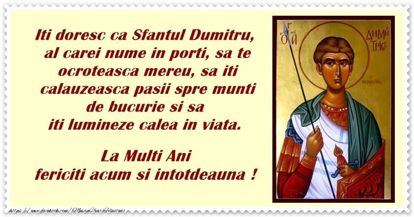 9. La mulți ani de Sfântul Dumitru! Îți doresc sănătate, bucurie, împliniri pe toate planurile și putere în viață!