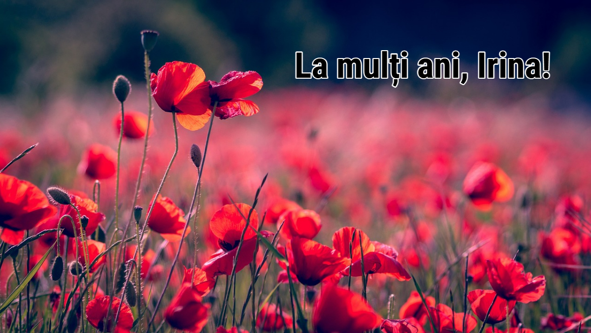 La mulți ani, Irina! Astăzi e ziua ta, iar eu îți doresc să ți se împlinească toate dorințele și să ai parte de o viață plină de lumină și pace.