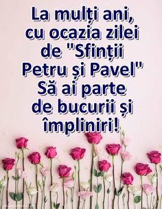 „Toate împlinirile frumoase, sănătatea si spiritul acestei zile să te însoțească pretutindeni. Îți doresc o zi de Sf. Petru/Pavel cât mai frumoasă!”