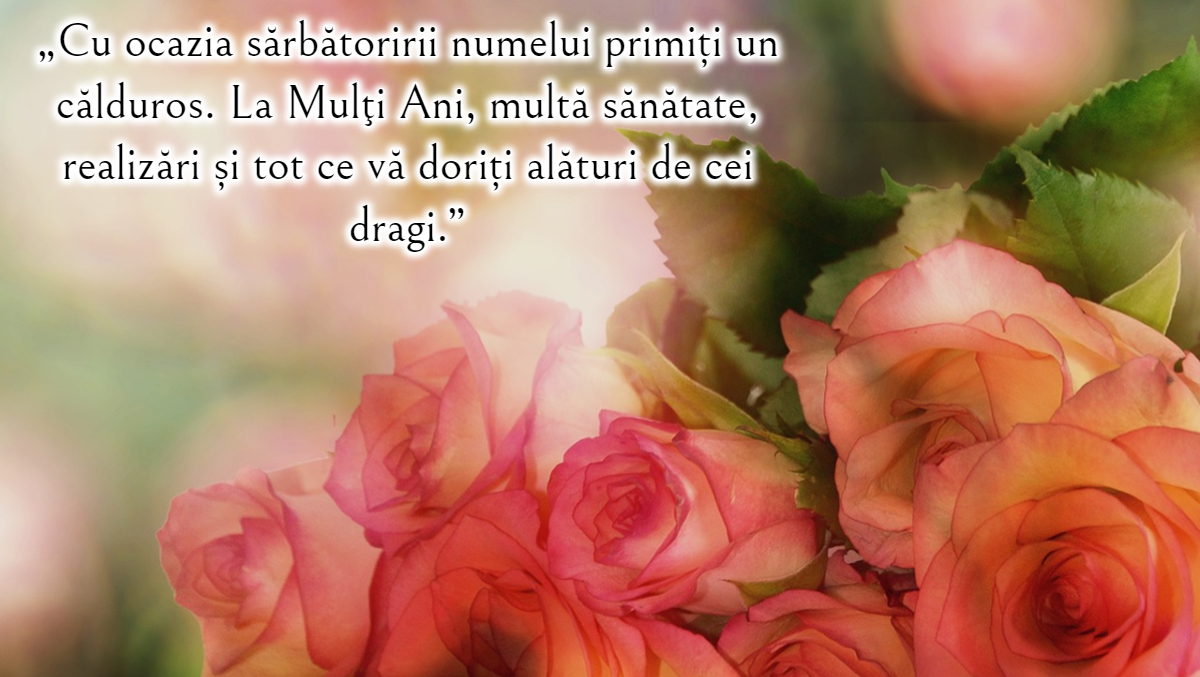 „De ziua numelui tău, îți doresc tot binele din lume, noroc, fericire si sănătate și să ți se îndeplinească toate dorințele pe care o să ți le pui. La mulți ani!”