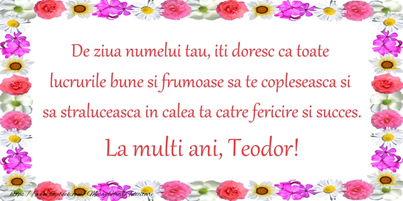„Nu doar de ziua numelui, Sfântului Teodor, să fii fericit(ă), ci în toate zilele ce urmează să ai parte de sănătate, bucurii și realizări și de respectul și prietenia celor din jur.