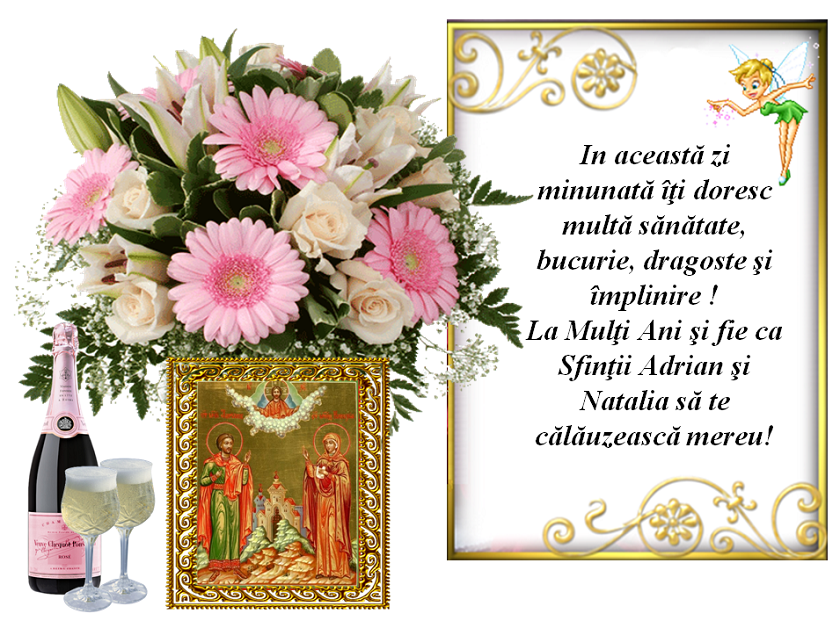 „Fie ca Sf. Adrian si Natalia, sa te ocroteasca, sa-ti calauzeasca pasii si sa-ti lumineze calea. La Multi Ani!”