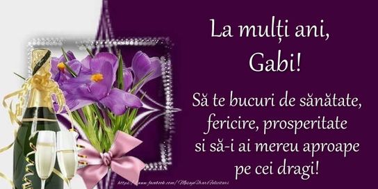 Gabriel(a) te felicit cu ocazia zilei de naştere şi îţi urez un cer senin, un soare strălucitor, fericire deplină şi tot ceea ce este mai pur şi mai luminos.