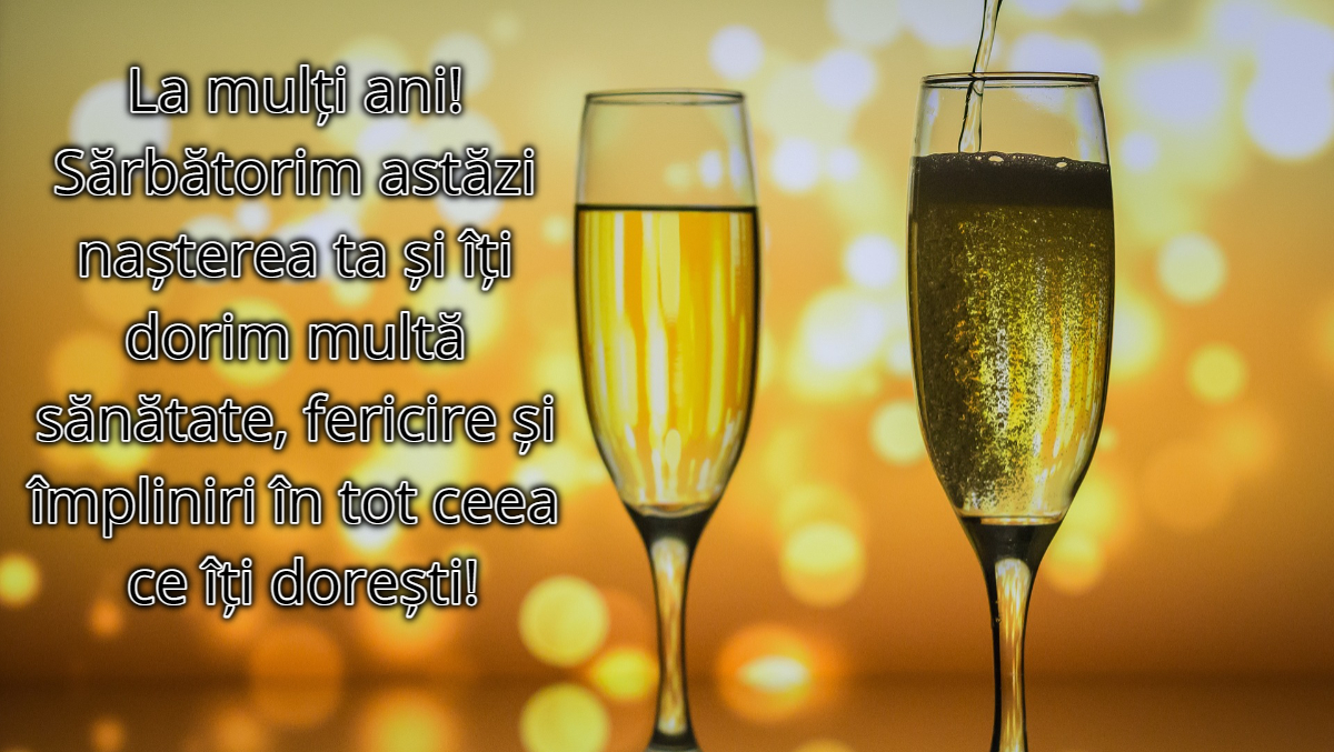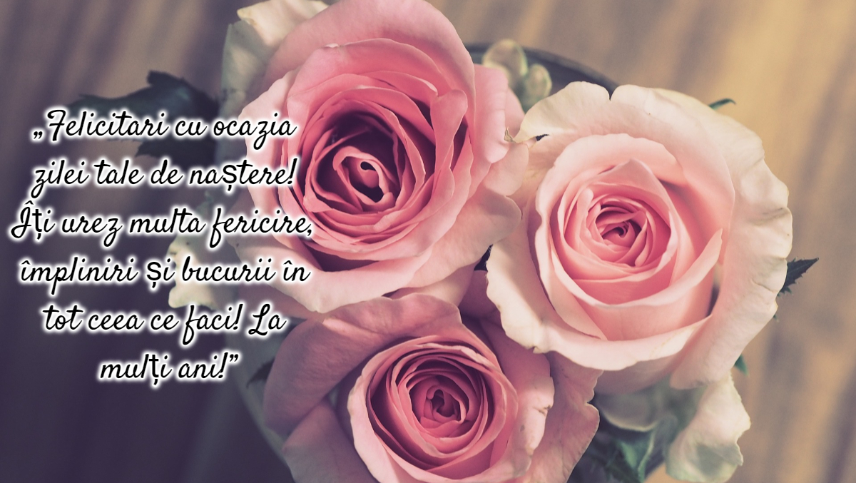 „La mulți ani! Sărbătorim astăzi nașterea ta și îți dorim multă sănătate, fericire și împliniri în tot ceea ce îți dorești!”