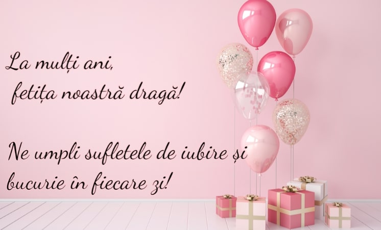 Draga noastră copilă! Îți dorim îndeplinirea tuturor dorințelor, iar mama și tata te vor ajuta în asta.
